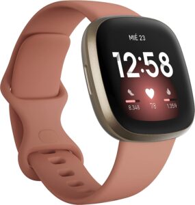 Si estás interesado en un seguimiento de tu salud y tu forma física, el reloj inteligente Fitbit Versa 3 es tu complemento ideal. Hace un seguimiento continuo de la frecuencia cardiaca y otras funciones relacionadas con la salud y el sueño.